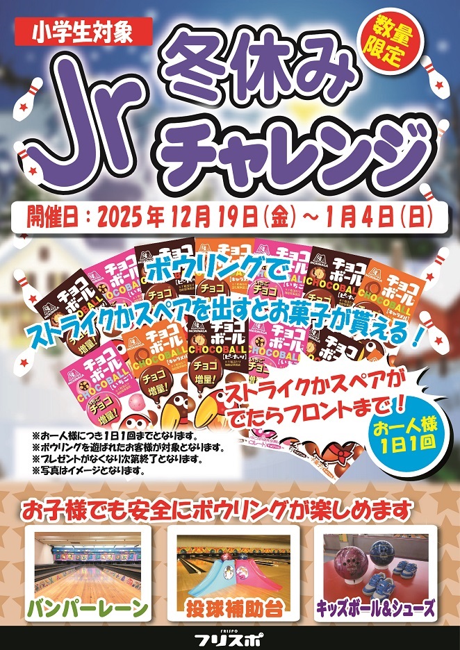 冬休み期間、小学生のお客様向けにフリスポ下館でジュニアチャレンジイベントが開催されます!